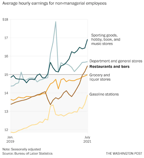 Van Dam, A., & Long, H. (2021, August 8). Average pay for grocery store and restaurant workers is now over $15 an hour. The Washington Post. Retrieved November 23, 2022, from https://www.washingtonpost.com/business/2021/08/08/fifteen-dollar-wage/